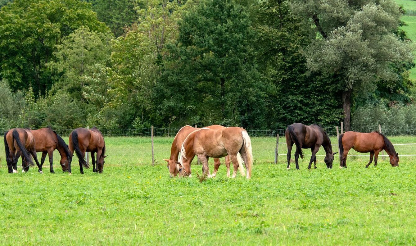 Es ist uns wichtig, dass die Pferde ihrer Art gerecht gehalten werden. Deshalb werden alle Pferde individuell gefüttert und haben ihren garantierten täglichen Weidegang in der Herde - im Winter auch mit Auslauf. Die Pferde gehen gemeinsam raus und kommen auch gemeinsam wieder in den Stall. Dafür stehen uns rund 4,5 Hektar Weideland mit direktem Zugang vom Stall zur Verfügung. Die Flächen sind so groß, dass die Pferde sich ausgiebig bewegen und entsprechend ihrer Rangordnung auch gut ausweichen können.